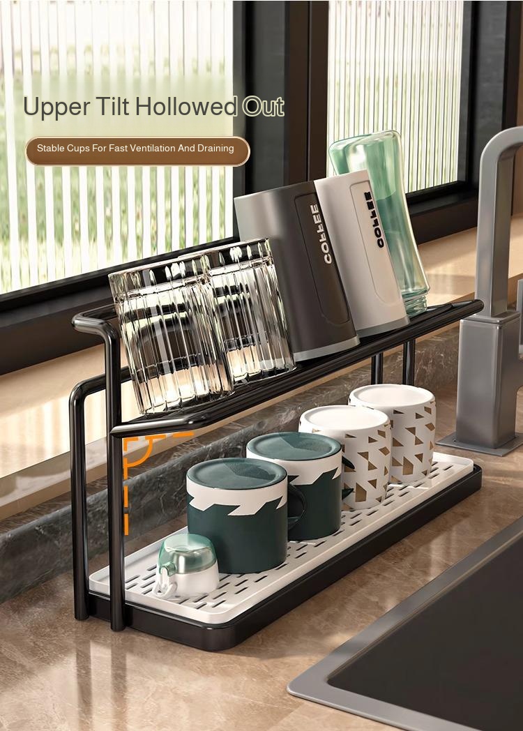 Cup rack storage rack kitchen table countertop glass cup tea cup coffee water cup double layer drain